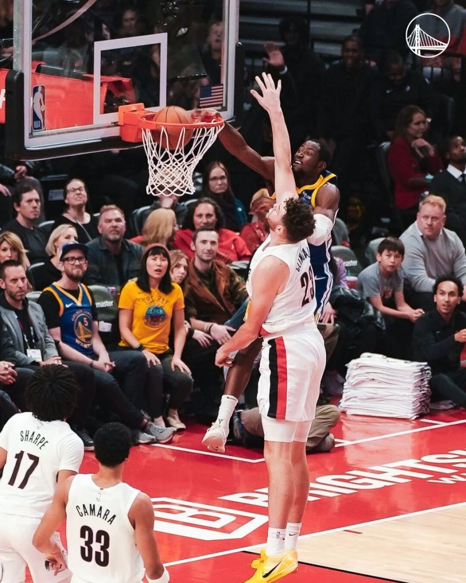 昨天勇士vs掘金,勇士利用5号位挡拆,针对约老师防不出来。今天面对拥有两个大中锋的开拓者,勇士采取了同样的战术,开局11比4打停开拓者。库里投疯了,首节9中6独得16分,其中三分球6中4。开拓者全队三分球只有10中2!